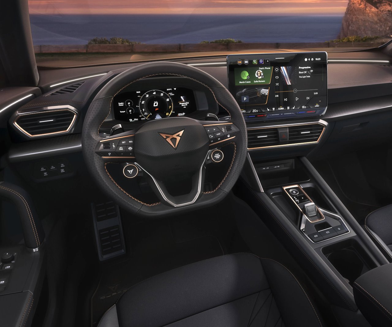 W standardowym wyposażeniu każdego Formentora jest najwyższa wersja systemu znanego z innych modeli koncernu, z dużym, 12,9-calowym ekranem dotykowym. Jest on wyposażony we wszystkie niezbędne łącza oraz funkcje, również w system komend głosowych, poza nawigacją, którą można „dołożyć” za 3302 zł. Na pokładzie są cztery gniazda USB-C oraz bezprzewodowa ładowarka dla smartfona.